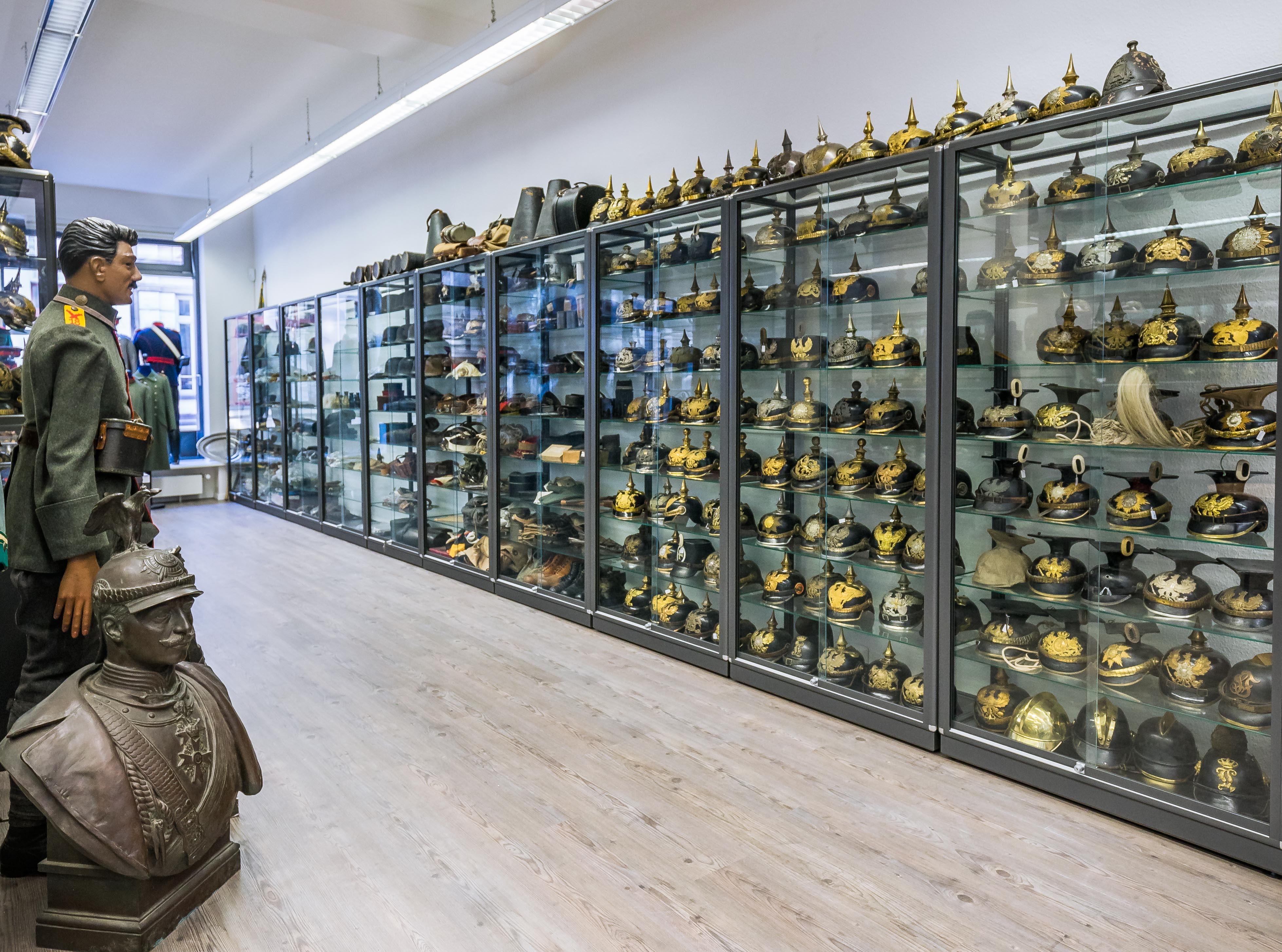 Als eines der führenden Fachgeschäfte in Europa führen wir auf zwei Stockwerken ein großes Angebot an: Orden, Ehrenzeichen, Auszeichnungen, Urkunden, Ausweisen, Büchern, Fotos, Uniformen, Pickelhauben, Stahlhelmen, Mützen, Säbeln, Dolchen, Bajonetten, Blechspielzeug und Massefiguren ...Schwerpunkt Deutschland 1800 -1945 .
